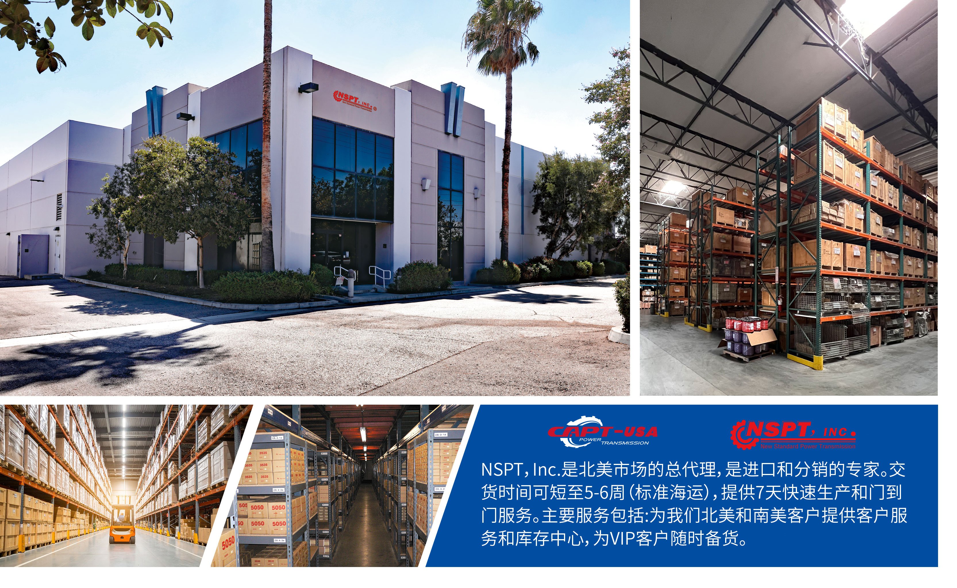 NSPT-USA, Inc. 為石家莊凱普特動力傳輸機械有限責(zé)任公司北美分銷商,成立于2005年,是一個在標準傳動產(chǎn)品行業(yè)成長較快的專業(yè)分銷商,負責(zé)在美國、加拿大等北美地區(qū)的采購、庫存管理和銷售工作。