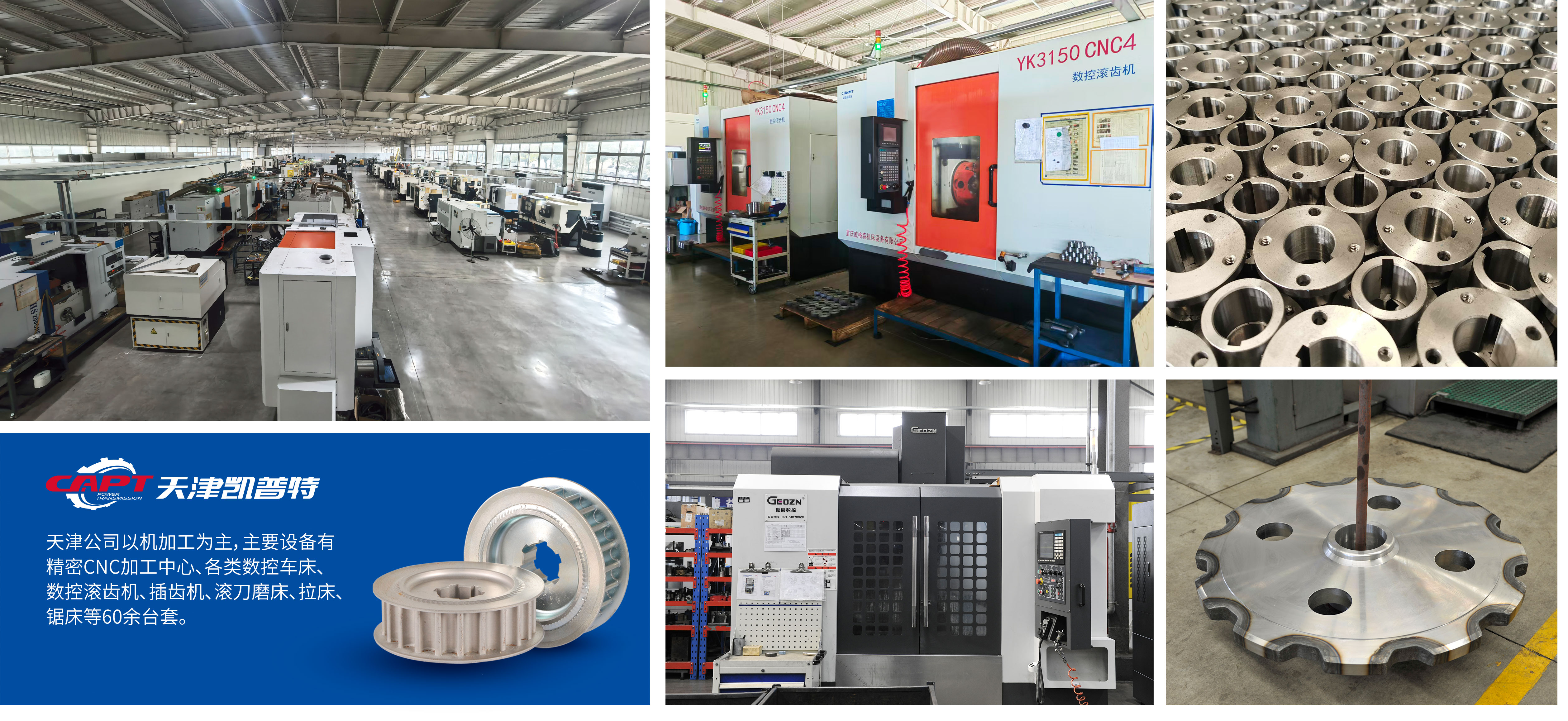 天津公司以機加工為主,主要設(shè)備有精密CNC加工中心、各類數(shù)控車床、數(shù)控滾齒機、插齒機、滾刀磨床、拉床、鋸床等60余臺套。擁有高精度三坐標測量儀、激光打標機、液壓壓字機、超聲波清洗線投影儀,光潔度檢測儀等測量及輔助設(shè)備。